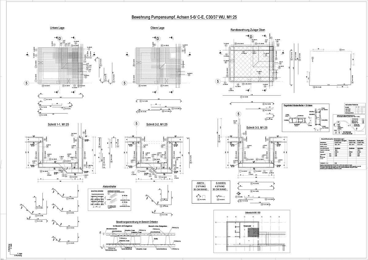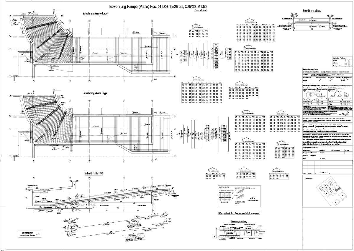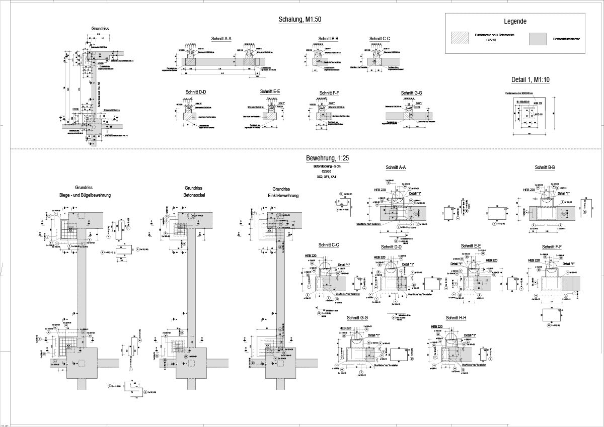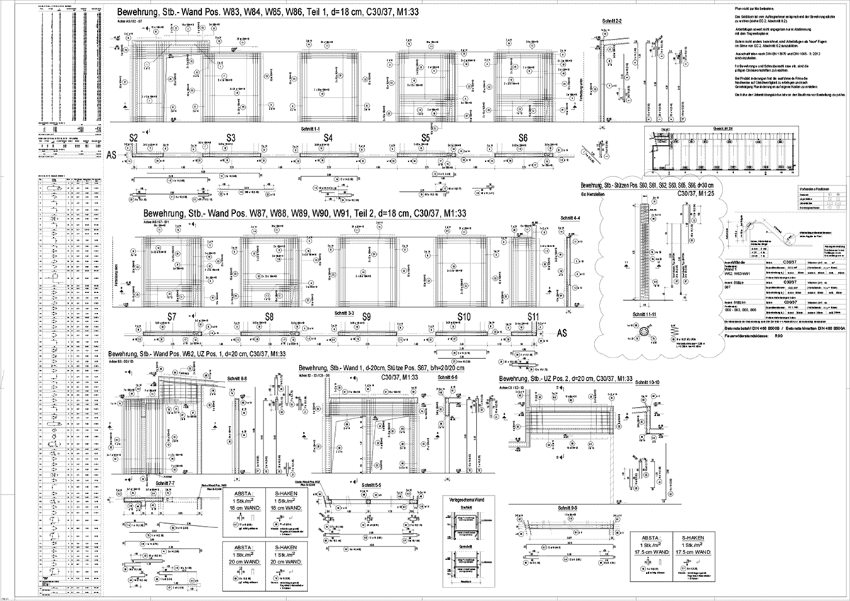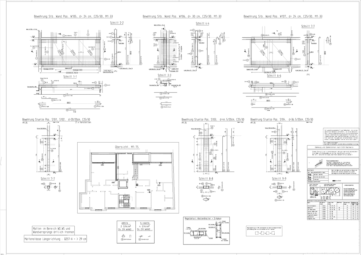 Das Leistungsangebot erstreckt sich über die Erstellung von Schalplänen, Bewehrungsplänen und